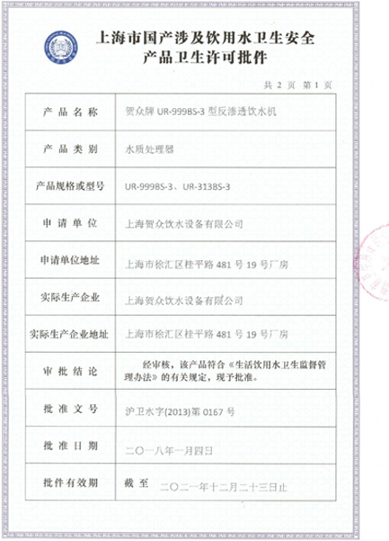 東莞市賀一飲水設備有限公司為賀眾牌飲水設備東莞授權總代理商,證號24019,負責上海賀眾飲水設備所產制的賀眾牌相關產品的銷售以及售后服務。